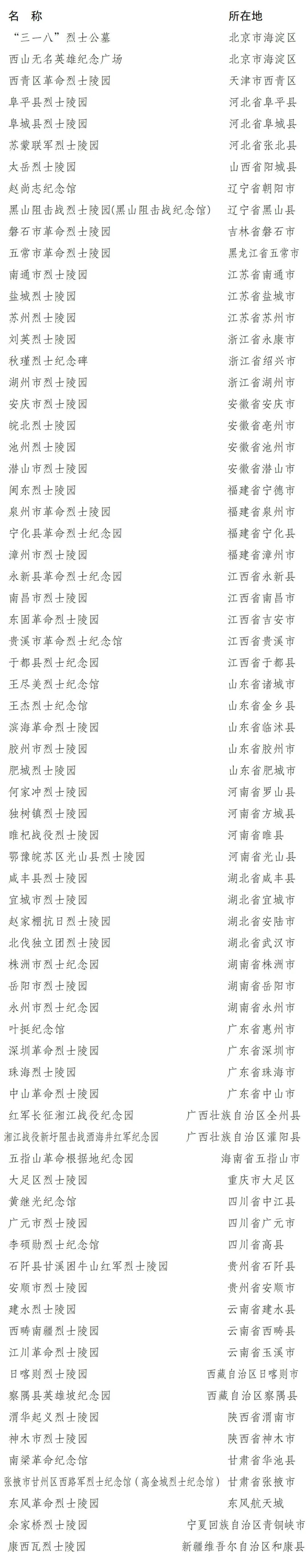 第七批国家级烈士纪念设施名单