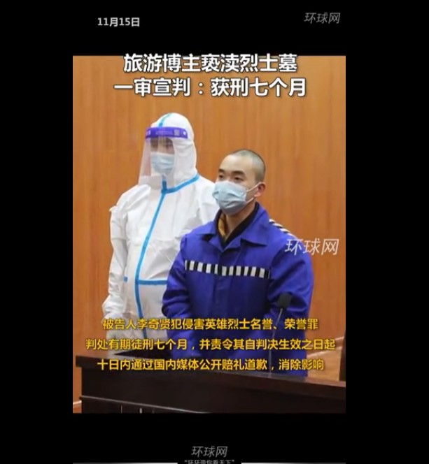 宣判!亵渎烈士墓的旅游博主获刑7个月!