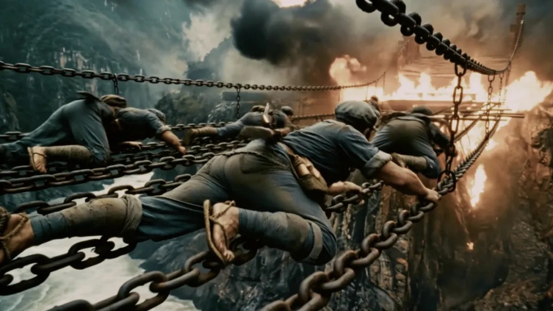 攀着铁索、迎着弹雨、冒着大火