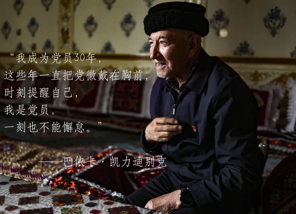 9月5日,当记者问到巴依卡老人是不是每天都佩戴党员徽章时,疲惫的巴依卡老人顿时来了精神,他说:“我成为党员30年,这些年一直把党员徽章戴在胸前,时刻提醒自己,我是党员,一刻也不能懈怠。”新华社记者 (兰红光 摄)