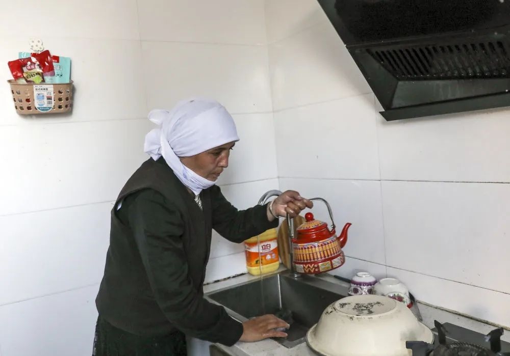 9月5日,拉齐尼的妻子阿米娜·阿力甫夏在自己家中烧茶。新华社记者 (程婷婷 摄)