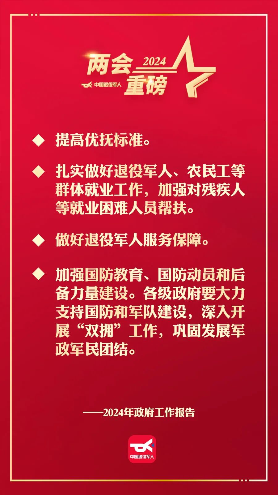 国务院总理李强向大会作政府工作报告,其中四处提及退役军人工作。