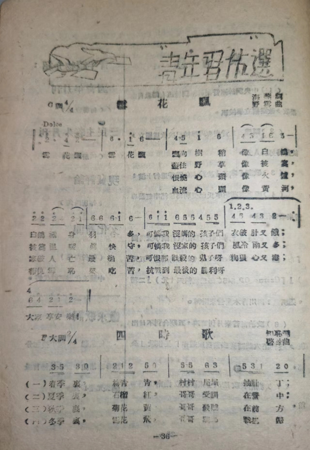 “雪花飘,雪花飘,血流心头像黄河,报仇雪耻要吃苦,抗战到最后的胜利呀……”在今天展览开幕式上,雨花台烈士纪念馆讲解员现场演唱了抗战歌曲《雪花飘》,这首歌曲正是由“北平五烈士”之一的赵良璋和战友薛介民共同谱写的。赵良璋是我党隐蔽战线的战士,同时也是一名音乐家,他以“野雪”为名谱写了多首抗日主题歌曲。但直到今年2月,雨花台烈士纪念馆才终于征集到发表有赵良璋烈士歌曲的刊物原件——1942年出版的刊有《雪花飘》曲谱的《青年音乐》,填补了其馆藏空白,此次展览就包括这一珍贵文物。