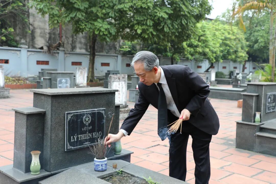 2024年清明节前夕,驻越南大使熊波率使馆馆员、在越中资企业、新闻媒体和留学生代表赴越南河内市嘉林中国烈士陵园祭扫,越中友协副主席阮荣光等友好人士参加。在庄严肃穆的气氛中,熊波偕全体人员向援越抗法、抗美英烈鞠躬默哀,敬献花圈并逐一敬香、表达深切哀思。陵园内,用大理石砌成的中国烈士墓整齐排列,陵园中心纪念碑上用中越文书写的“革命烈士永垂不朽”分外醒目。熊波发表祭文深情回顾上世纪五、六十年代中华优秀儿女响应党和国家号召,背负祖国人民重托,义无反顾支援越南人民抗法、抗美救国事业、维护新中国和平安宁的难忘历史,向用鲜血和生命铸就两国友谊不朽丰碑的革命英烈致以崇高敬意。熊波告慰先烈们表示,在以习近平同志为核心的党中央坚强领导下,中国胜利实现第一个百年奋斗目标,推动党和国家事业取得历史性成就、发生历史性变革。党的二十大开启了全面建设社会主义现代化国家、以中国式现代化全面推进中华民族伟大复兴新征程,中国比历史上任何时期都更加接近、更有信心和能力实现中华民族伟大复兴的目标。熊波表示,继承先烈遗志,就要不忘初心,牢记使命,对党忠诚,发奋图强,为实现中华民族伟大复兴而奋斗;就要不畏强权,勇于担当,敢斗善斗,坚决维护国家主权安全发展利益;就要大力弘扬老一辈领导人亲手缔造和精心培育的中越传统友谊,将“越中情谊深,同志加兄弟”的精神发扬光大,推动具有战略意义的中越命运共同体建设早日落地生根、开花结果,更好造福两国和两国人民。嘉林中国烈士陵园安葬着在上世纪五、六十年代援越抗法、抗美斗争和支持越社会主义建设时期牺牲的48名中国烈士。