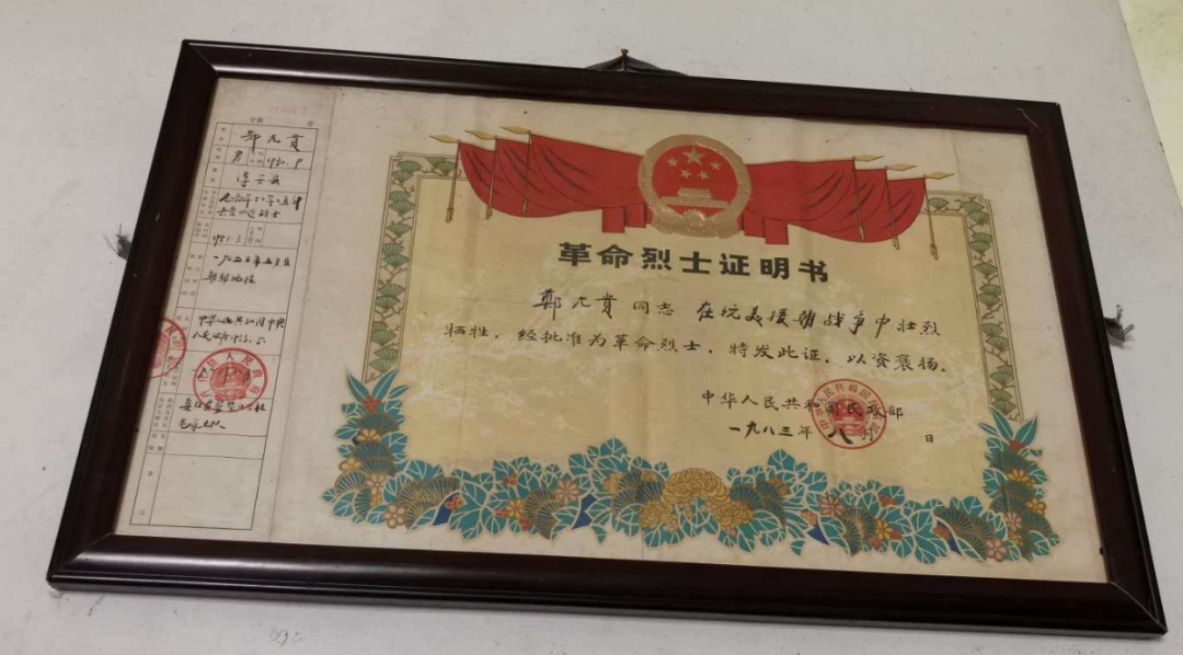 郑光贵留下的东西太少了。那个年代,家里穷,拍照是件奢侈的事。他留给这个家唯一的念想,是一张官方发的纸:1983年8月发的《革命烈士证明书》。