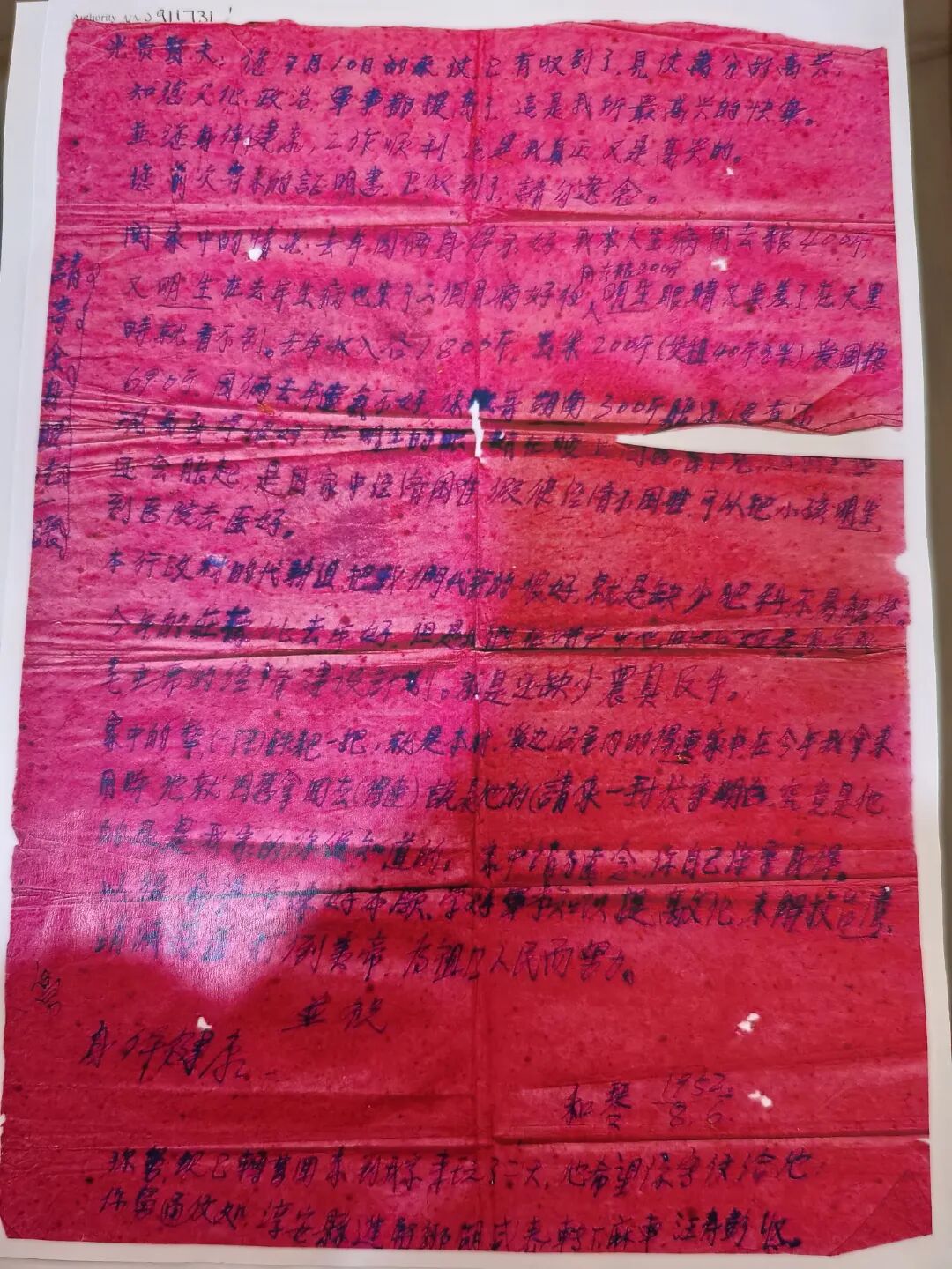 那天,104岁的老人,和74年前的信,静静地待在一起。她没有落泪,也没有太多话。只是偶尔低头,看一眼那抹熟悉的玫红色,偶尔用手指,轻轻摩挲一下纸面。