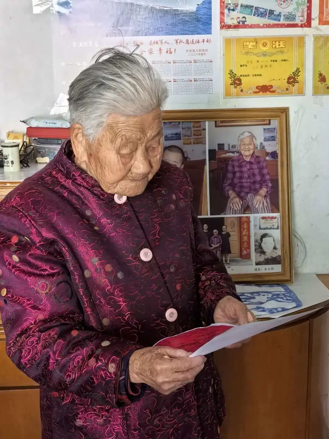 早春的阳光,斜斜地照进开化县池淮镇玉坑村的一间农家小院。104岁的汪荷琴坐在椅子上,膝上铺着一张玫红色的复印件信纸。纸张褶皱破损,但字迹清晰可辨。